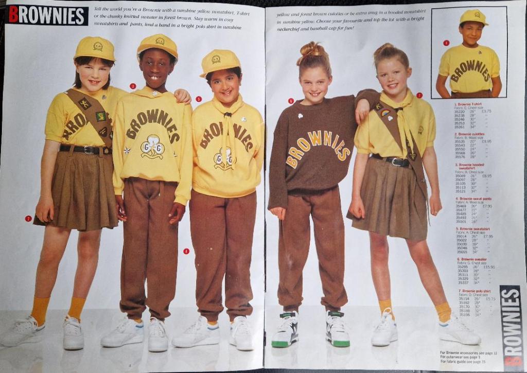 October 1990 issue, and although the uniform had yet to become available to buy, the opinions kept coming, and the views, although mixed, were still as heated! ”If I read one more letter from either a Guide or a Guider complaining that the new uniform is not smart enough for Church Parade, I think I shall scream. Just what are we teaching the girls? That they can only go to church if they are all dressed identically like an army platoon? That God hates trainers? Surely God – and the congregation – wants to see happy, smiling Guides on parade and, if beanpole Betty, wee fat Wilma and voluptuous Violet have chosen different items from the catalogue, is that important? I bet that they will all have baseball caps – and I will too!” ”I looked round my church last Sunday to see what people were wearing . . . We had all gone to church to worship God, not to judge one another by our clothes. Please let us accept the new uniform, stop wasting time and energy moaning about it and get on with Guiding.” ”I wonder if all the ‘moaners’ actually submitted their uniform ideas two years ago. I’m sure God will not mind what the girls wear just so long as they attend! My Brownies think the new uniform is great and so do I. I can’t wait to get a new blouse, which could be worn to work . . . The skirts, although long, can easily be shortened. Also gathered skirts will always be more in fashion than A-line ones. Come on Guiders, look to the future – change is necessary every now and then. It won’t be too painful to adjust.” ”It is bad enough to see the Colour party, at a Church Parade (of four Guides) without hats, but the prospect of three girls in different ‘uniforms’ spells disaster. No longer are Guides a uniformed organisation – and I am very sorry today’s Guides are not proud of so being.” ”I feel we have now lost our unique identity and given way to fashion and choice, which I do not believe we all wanted. Anyway how much of a choice do we have? Some parents cannot afford the basics of the uniform without having to keep up with their daughters’ desires to be the ‘same’ as their friends. Also how many Guiders can truly afford such an outgoing, even if we do have three years to save up!” ”We are in danger of losing the special pride that has always been associated with being a member of a ‘uniformed, worldwide movement’ and becoming another youth group with a logo, all for the sake of a fashion, which will be out-of-date in ‘no time’. I feel very sad about this and hope there is time to salvage something of our Movement’s credibility before it’s too late.” ”Our identity, sense of pride and uniformity has been thrown away. Far from opening our Movement out to encompass other youngsters, you are closing our doors to all but the children with money. There was very little wrong with our dress uniform . . . we looked smart and everyone recognised us. I feel the majority of Guiders and Guides agree with me. We feel you are attempting to turn us into a casually dressed, elite youth club and this we do not want. We were very proud of our uniform and those I have spoken to on the subject feel very let down and disheartened.” It was made clear that this would be the last issue of the magazine in which opinions would be published.