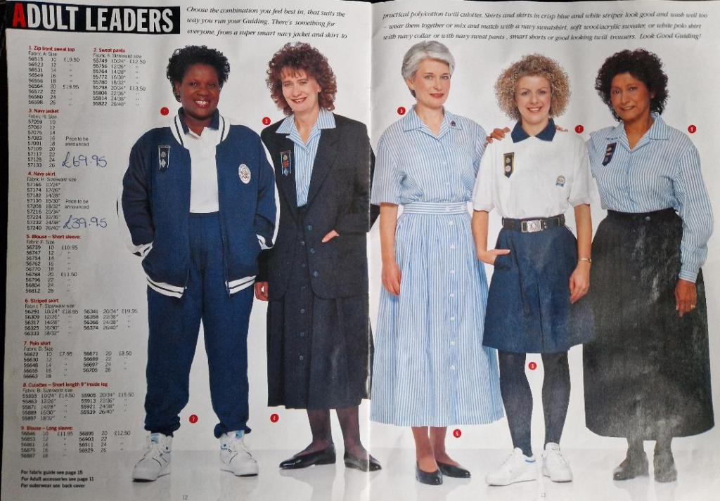Of course it wasn’t a smooth process – there were significant delays in manufacture and distribution. When it launched in September 1990, some of the items weren’t initially available in the shops – but there was a mad rush to buy, and reports of leaders trying on garments in the middle of the CHQ shop! There were major problems with sizing – one leader who normally wore size 16 as standard ended up with garments ranging from size 12 to 20!