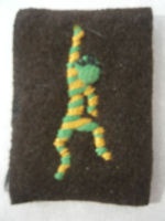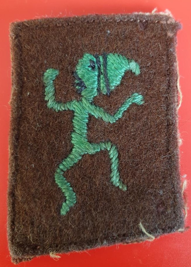 By 1918 a selection of ‘fairy folk’ Six names and badges were used for the Sixes – Elf, Gnome, Sprite, Imp, Pixie, Fairy, Leprechaun, Little People, Bwbachod, Tylwyth Teg. (Ghillie Dhu was added in 1928, to ensure that there were two Scottish names alongside the two Irish and two Welsh ones). Each Six was led by a “Sixer”, who was helped by her “Second” – and they led their Six, with a thin ‘Wand’ topped with their Six emblem, in hand. Metal ‘Service Stars’ were issued, to be worn above the left pocket, with a brown felt disc behind – one for each year of membership.