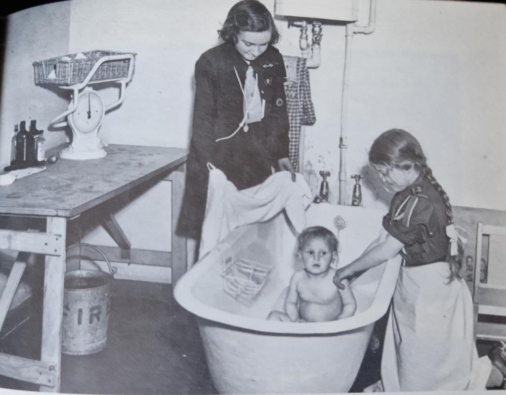 With the declaration of war, many Companies and Patrols volunteered their services to the authorities as teams – and were soon put to work. One Patrol helped at an evacuated nursery every morning – including bathing dozens of babies and feeding many infants and children – the Child Nurse interest badges they wore being considered sufficient qualification. A group of Rangers worked at a hospital, and from initially doing unskilled work such as washing flower vases, they soon progressed to giving injections and dispensing from the medicine trolley, as they showed their reliability and trustworthiness.