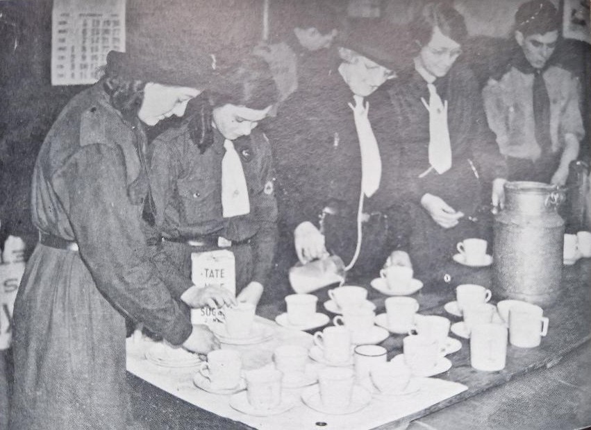 Guides worked in canteens and rest centres, serving food, washing dishes and looking after young children. Guiders set up youth centres, to provide activity for teenagers who lacked occupation in the evenings, especially where parents were serving overseas or working long nightshifts in factories.