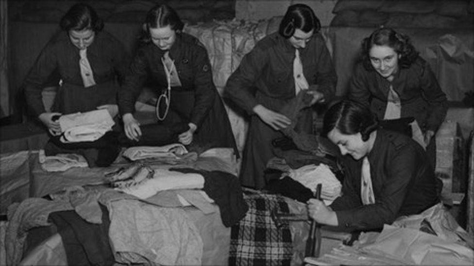 And it wasn’t just in the UK – in the Empire ,as it was then known, many units were busy raising funds, or collecting goods to send, to support both local causes in those countries directly affected by the war, and to support Britain too – such as these Guides from the West Indies who sorted silver paper to donate to the Red Cross. Many donations of clothing and shoes from countries abroad such as Australia, Canada, and the USA, were issued to Guides who had lost everything bar what they stood up in when their homes were bombed.