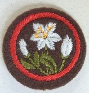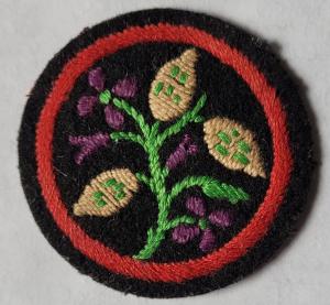 These were only available between 1922 and 1941 – during that time Ranger units had Patrols and Patrol Leaders, but not before or afterwards (officially!). In terms of design, they were in the same format as for Guide Patrol Badges – stitched on black felt, the logo being withing a red circle.