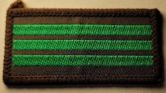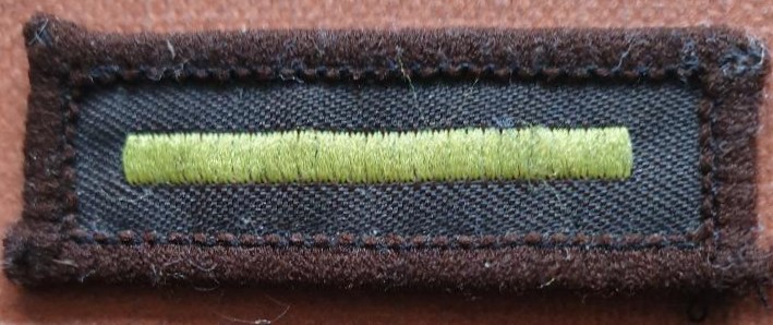 Guide Patrol Second Badge. 1968-c1990s. Single-stripe woven badge which was worn fitted underneath the Patrol Badge. Preceded by pocket stripe, replaced by pin badge.
