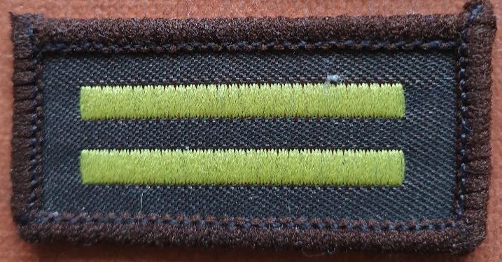 Guide Patrol Leader Badge. 1966-c1994s. Double-stripe woven badge which was worn fitted under the Patrol Badge. Preceded by pocket stripes, replaced by pin badge.