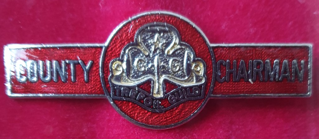 Trefoil Guild County Chairman Badge. Work by a Trefoil Guild member who acted as liaison between local Guilds within a Guiding County, and the Trefoil Guild HQ.