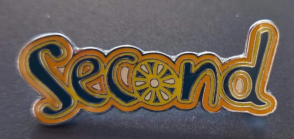 Brownie Second Badge, 1968-mid 1990s. Preceded with braid ring worn around the sleeve, replaced by a pin badge with rubber front. This badge always appeared without lettering – it should not be confused with the similar Golden Bar badge (c1918-1968) which did have Girl Guides lettering.