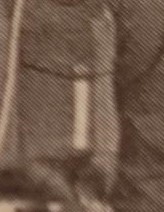 Brownie Second Badge – until 1968. Yellow braid ring worn stitched around the sleeve of the brown dress.