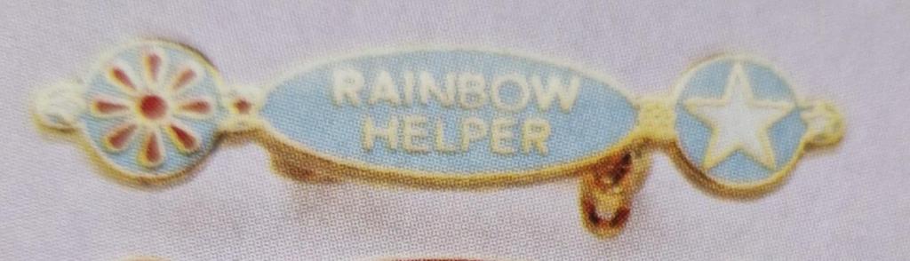 Rainbow Helper Badge. 1987 – c1990s. Replaced by metal pin badge. Worn by Guides who, alongside being active members of a Guide unit, also helped regularly at a Rainbow Unit.