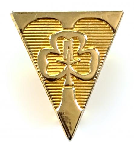 Girl Guide Trainer Badge. 1968-1990s. Awarded to adults in Guiding who qualified to train adults in general subjects. Differing colours of metal in bronze, silver and brass colours indicated different grades of Trainer.