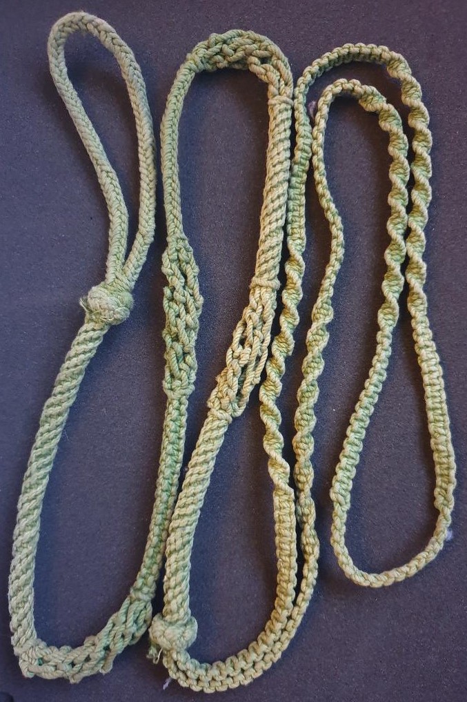 Lanyards were worn as indicators of rank by many levels in Guiding. All Sea Rangers wore white lanyards which they made by knotting Platers Line. Patrol Leaders wore plain white lanyards until around 1963. Green Lanyards indicated holders of Camp Licence, they were worn at camps into the 1980s. Buff Lanyards indicated holders of Pack Holiday Licence, they too could be worn at Brownie Holidays into the 1980s.