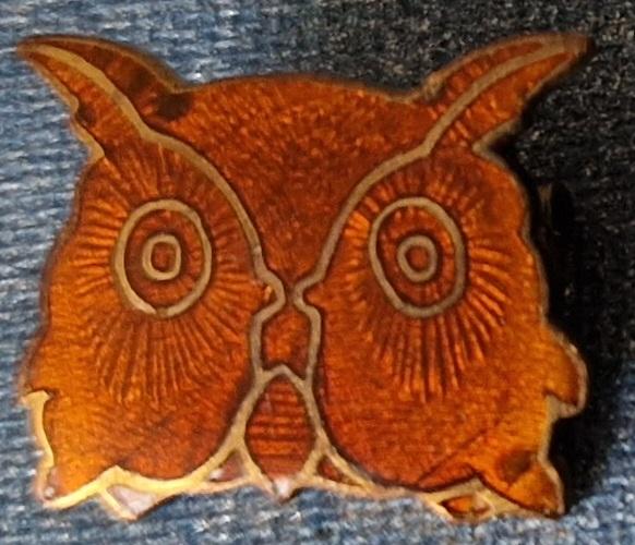 Tawny Owl Warrant Badge. Issued c1920s – 1968. Indicated that a Guider had completed the training and qualification to assist with the running of a Brownie Pack. The shades of brown enamel on the owl can vary from light tan to dark brown.