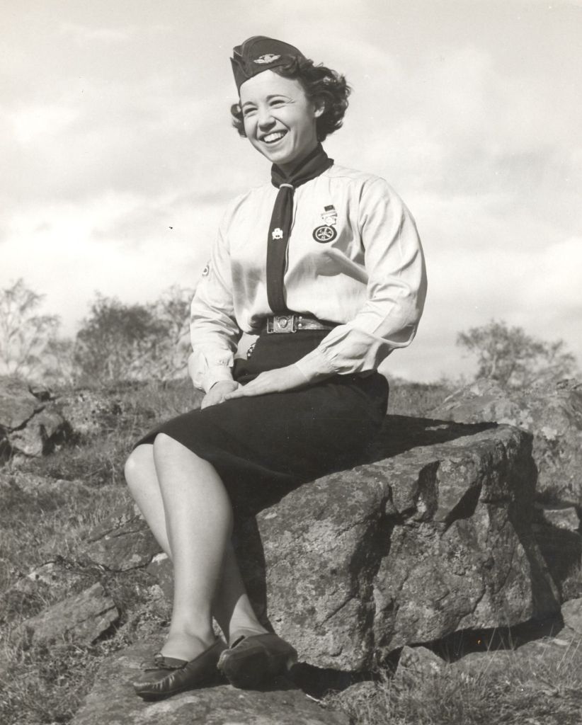 June 1959 – “In answer to a general demand an alternative to the battledress blouse and skirt for Guiders, Rangers and Cadets has been designed and will be on sale from 1st July . . . This uniform will also be an alternative to the coat and skirt for Commissioners.”