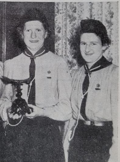 Wartime had an impact on Guide uniforms, too. – especially with clothes rationing, from July 1941 onwards. “The Guider” gave details of the impact on uniforms: Guide and Brownie – Mackintoshes – 11 coupons, Coats, Showerproof or Pilot Cloth – 8 coupons, Overall – 4 or 6 coupons (4 for up to 39″ size), Skirt without bodice – 5 coupons, with bodice – 6 coupons, Blouse or Jumper – 3 coupons, Knickers – 2 coupons, Stockings – 1 coupon (up to 9.5″), Ankle Socks – 1 coupon, 2 Handkerchiefs – 1 coupon, Triangular Ties – 2 coupons, Gloves – 2 coupons, Slippers or Shoes – 3 coupons. Cotton Fabric 36″ was 2 coupons per yard, Woollen Fabric 36″ was 3 coupons per yard, Knitting wool was 1 coupon per 2-ounce ball.
