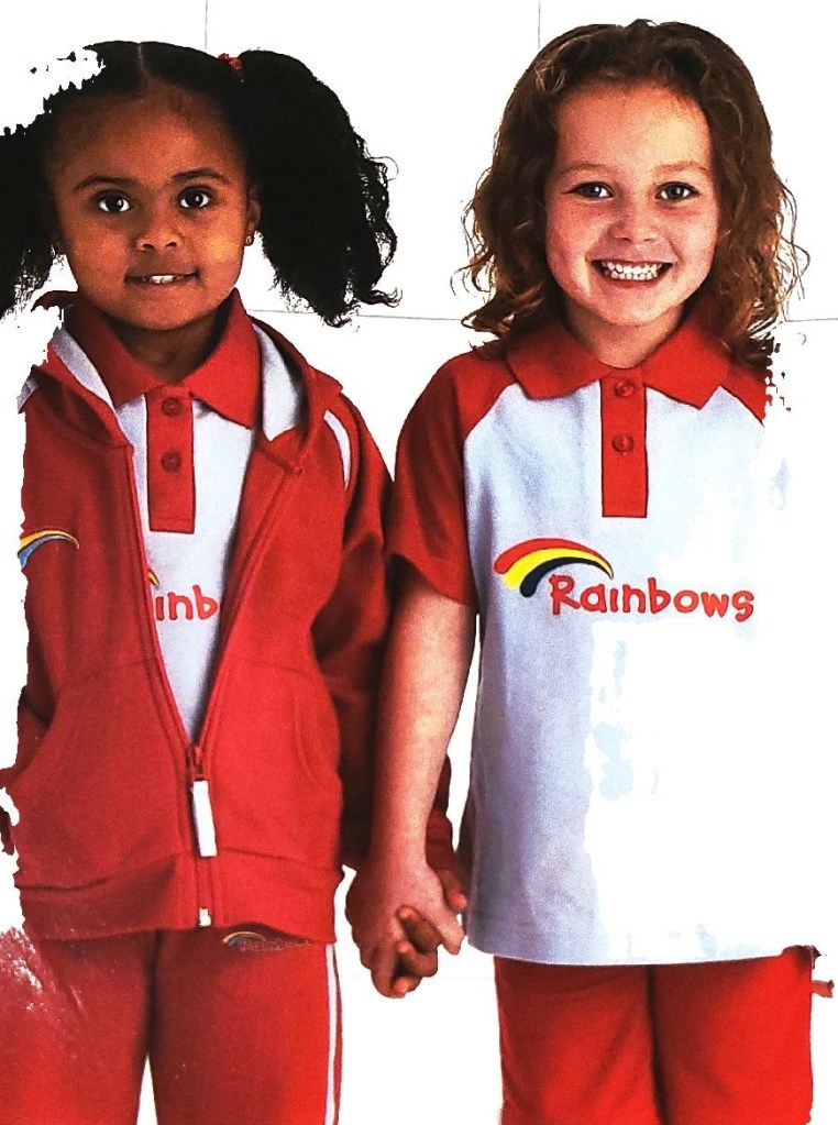 When the time came to launch the new section nationally, the experience of these pilot groups led to the decision that coloured tabards would be the appropriate uniform option for Rainbows, and a range in four colours was introduced at the launch of the section – Red, Yellow, Green and Blue. (A few years later Orange and Violet tabards were introduced to the range).