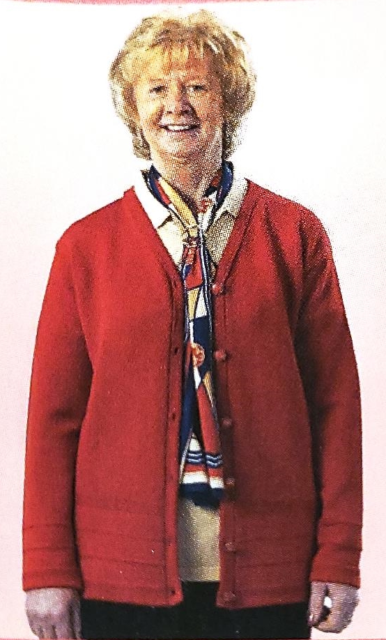 In the mid-2000s, optional clothing items for Trefoil Guild members were introduced by the Guiding Trading Service. There was a polo shirt in either beige or red, a silky scarf with a red, blue and beige pattern, and what was termed a ‘jacket’ – a longline knitted cardigan-style garment, in either red or mid-blue. Though the chunky knit meant the garment could be warm, the difficulty was that it came as one standard length for all, it meant that on some members it didn’t reach far past the waist, whereas on others it was almost knee-length.