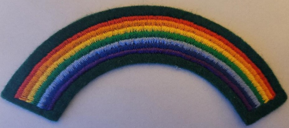 March 1988 – The following Rainbow items will be available mid-end March. “Rainbow Tabards, ready-made, two sizes – small and medium, red, blue, green or yellow only. Tabard Pattern for home dressmakers. Rainbow Badge for girls to wear on tabard – centre chest.”
