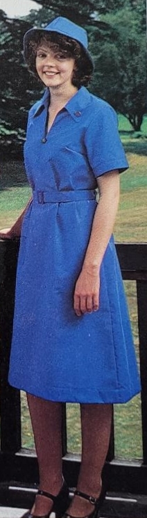 February 1967 – New Ranger uniform will be available from 6th February. This consisted of an aquamarine v-neck blouse with epaulettes, navy skirt, and navy ‘air hostess’ hat with aquamarine piping. This could be worn with a navy uniform suit jacket if wished.