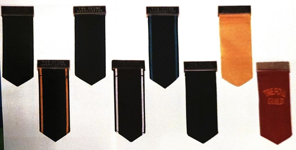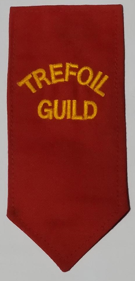 You will notice that this section is named differently to the other ‘clothing’ sections on this page. Deliberately so. For in the UK at least, the Trefoil Guild has never had uniform, and that continues to be the case to this day. Certainly, there used to be optional distinguishing marks. And in more recent decades, a range of garments have been available. But that’s the thing – there was the armlet, the badge, and then the garments in red or blue or beige – but they were always optional, and were never uniform, something which Trefoil Guild members were determined to maintain. As such, in this section I can introduce you to some of the distinguishing marks or optional items, but these should be viewed in context – as things which people may have opted to wear in given eras, but would as likely not have . . .