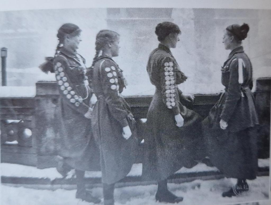 It was in 1918 before the first photograph appeared, to give more detail to the meaning of the uniform instructions which were published in the new handbook, Girl Guiding, in January 1918: