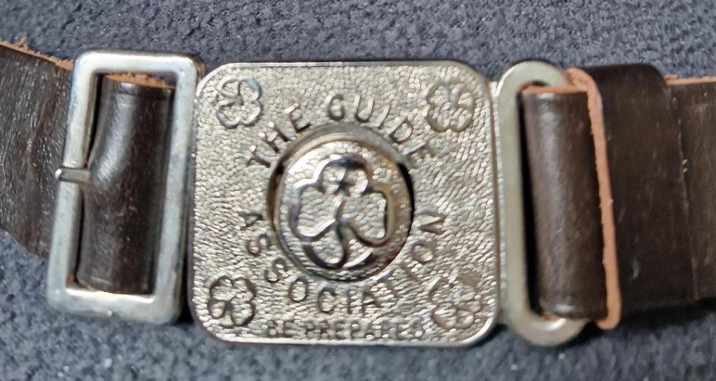 Throughout Guiding’s history, belts have been part of the uniform. Prior to 1990 Brownies wore a simple brown belt in either leather or PVC with an unmarked silver belt buckle. Because they were not distinctive, and could as easily be worn in mufti as in uniform, they don’t appear so often on the second-hand market.
