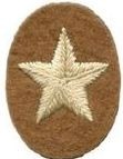 With the brown frock was worn a folded brown tie similar to that of the Guides, a bucket-type hat in straw or canvas or a knitted woolen hat, and black stockings. From June 1917 the Patrols were renamed Sixes, and the emblems for them were changed from trees to ‘fairy folk’, and in January 1918 Brownie Service Stars were introduced, on a brown felt ground. Wartime shortages meant that for a time, a fabric tenderfoot badge showing a ‘Brownie man’ in gold stitching on brown felt was used, a sample is shown left, and a photograph of one being worn in uniform is shown right.